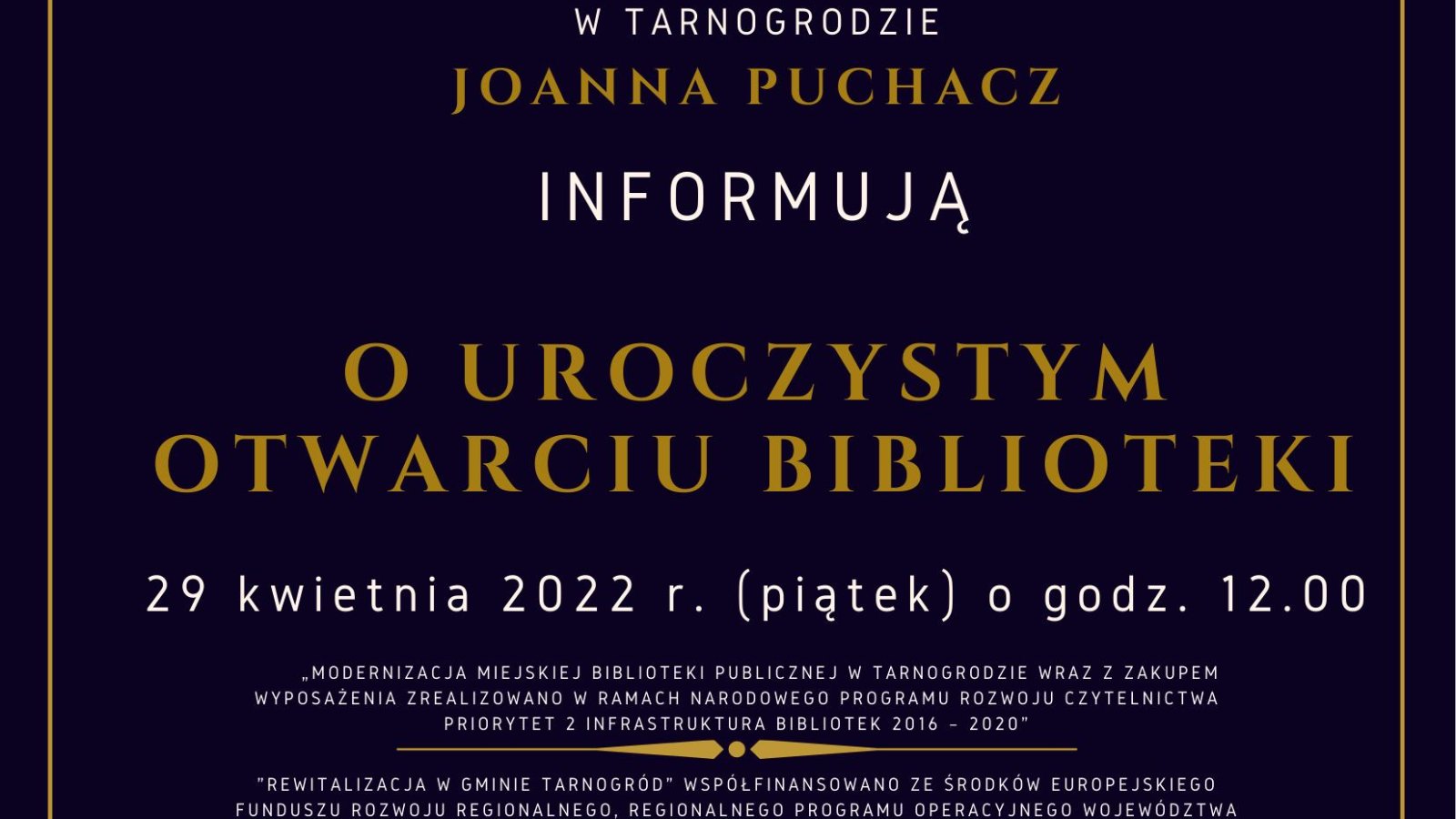ZAPRASZAMY NA UROCZYSTE OTWARCIE BIBLIOTEKI