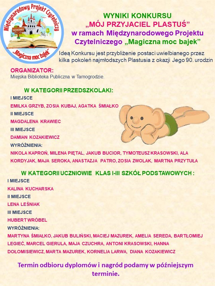 Wyniki konkursu „Mój przyjaciel Plastuś”