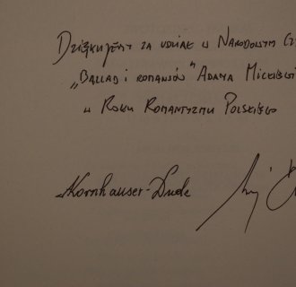 2022-10-25 Podziękowanie od Prezydenta RP Miło jest nam poinformować Państwa, że Biblioteka Miejska w Tarnogrodzie otrzymała list gratulacyjny od Prezydenta Rzeczypospolitej Polskiej Andrzeja Dudy oraz Pierwszej Damy Agaty Kornhauser-Dudy. Podziękowania skierowane są do wszystkich uczestników Narodowego Czytania "Ballad i romansów" Adama Mickiewicza w Tarnogrodzie, które to stanowiły wyjątkowe uhonorowanie Roku Romantyzmu Polskiego. Jako wyraz podziękowania i pamiątkę otrzymaliśmy okolicznościowy egzemplarz "Ballad i romansów", wzbogacony ilustracjami, które powstały specjalnie na Narodowe Czytanie 2022. czytaj dalej »